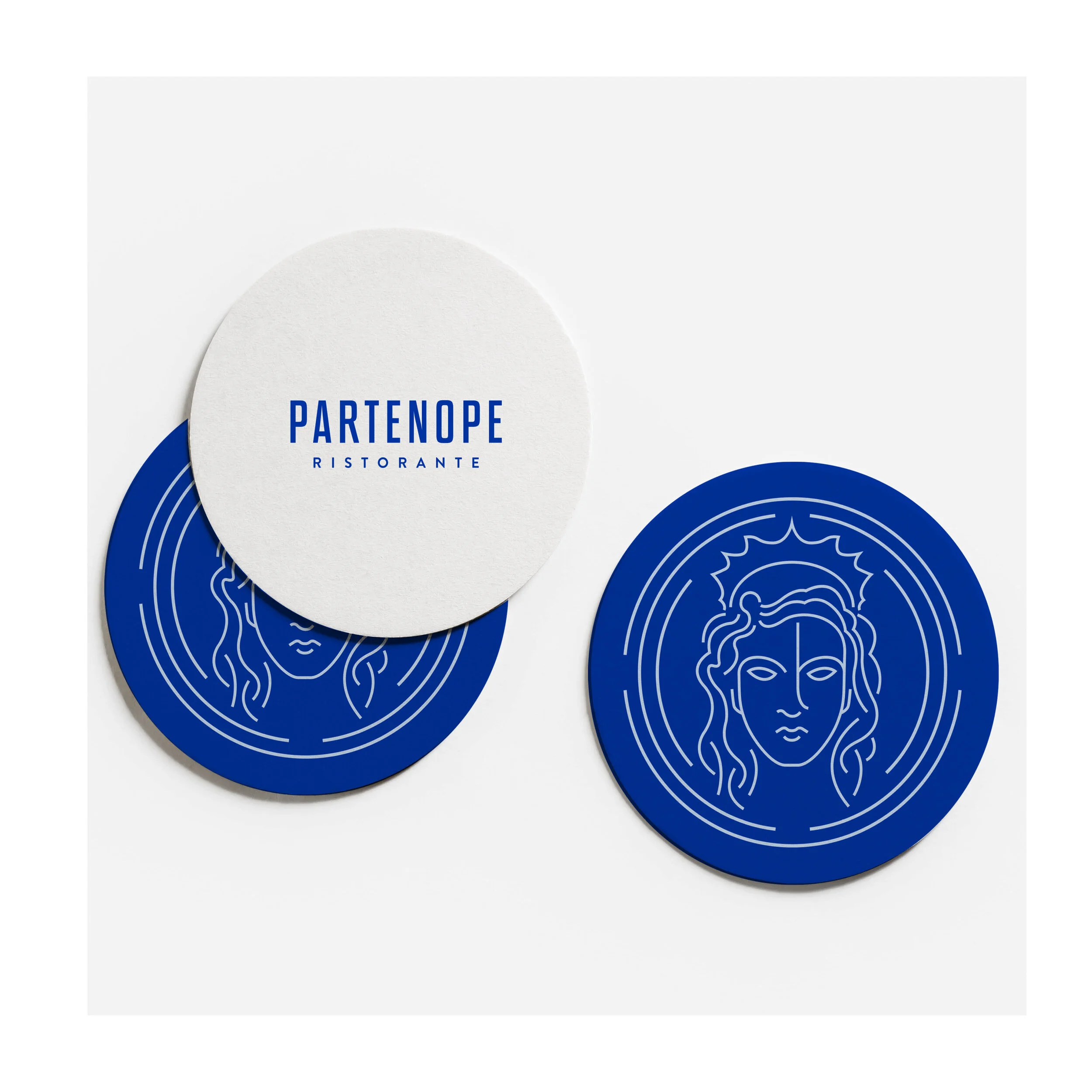 Inspired by Dino’s hometown of Naples, Italy and its namesake Partenope, a siren of the sea that died of heartbreak, washed ashore and became the town of Naples (or so the legend goes). Some locals even still call the city “Partenope” instead of Naples. Once we had the name, we drew inspiration for the logo from Naples itself, specifically the Spanish Quarter neighborhood, so we decided to take a tour of the city. Since we didn’t have the time to fly all the way to Italy, we took to Google Earth and virtually “drove” through the streets. The primitive street signs really caught our attention, and we created a custom logo font drawn from them. Additionally, we scoured hundreds of ancient texts and drawings to find pictures of sirens and their accoutrement and ended up with a beautiful set of logo icons to be used as a system along with the word mark.